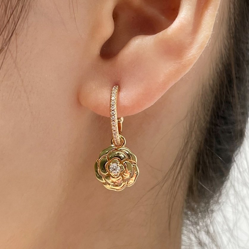 Inspired by the timeless Camélia flower, each earring features a delicate floral pendant adorned with sparkling zirconia stones, radiating elegance and romance. Lightweight and comfortable to wear, these earrings are perfect for everyday styling, parties, or romantic occasions.
